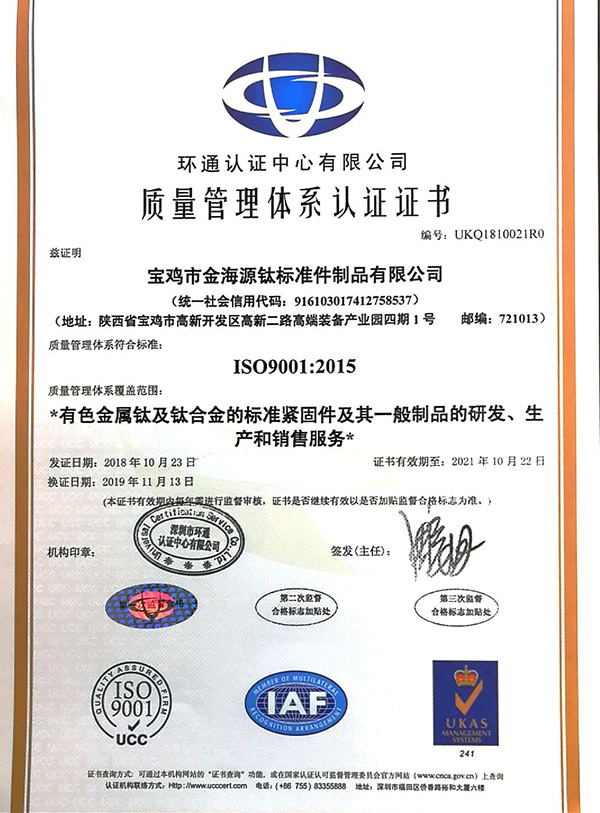 宝鸡市金海源钛标准件制品有限公司_资质荣誉